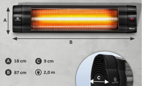 Infražiarič nájde využitie najmä pre vonkajšie ohrievanie do 10 m2 a v interiéri do 25 m2. Môžete ho využívať trvalo v interiéri pri vykurovaní domov, šatní, terás, zimných záhrad, predzáhradiek, kaviarní, dielní. Žiarič je vybavený diaľkovým ovládaním pre možnosť zapnutia, vypnutia a zmeny výkonu aj pri umiestnení vyššie na stene, alebo na strope.